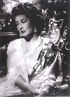 Princess Niloufer of Hyderabad, b.1916 –d.1989 (c.1945) Princess Niloufer was among the last of the Imperial Ottoman princesses. At the age of 15, she was married to Prince Muazzam Jah , second son of Nizam of Hyderabad. Here she wears a chiffon sari, embroidered with sequins and beads on the shoulder, which was designed for her by Fernande Cecire. |