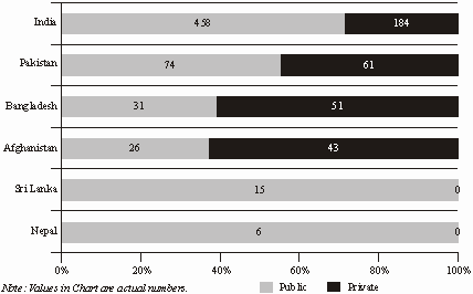 FIGURE 5 Distribution of Public-Private Universities in South Asia |