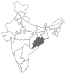Map of India highlighting Odisha state (top left); State of Odisha highlighting Keonjhar district (bottom left); Keonjhar district with Teranti village (right). |