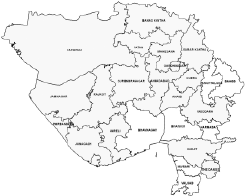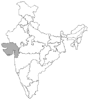 Map of India with Gujarat state highlighted (left); Map of Gujarat with its districts (right). |