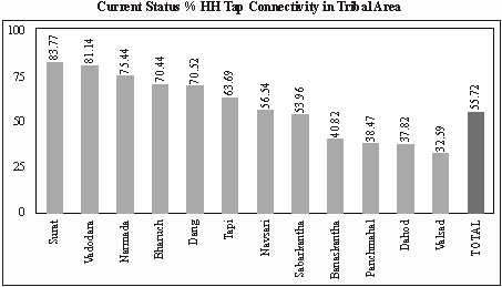 100% tap connectivity in tribal areas – Tribal communities live in scattered habitations that normally consist of 10-20 households. The scattered habitation along with undulating terrain makes the multi-village rural water supply scheme technically and financial unviable. Through a geo-hydrological study, every household has been connected with a piped water system. The directives from the chief secretary for ensuring 100% tap connectivity in tribal areas met with success, in part because of additions to the budget of the tribal department. A Rs 40 crore allocation was made to WASMO for being the primary facilitator of village water supply schemes through paani samitis in tribal areas; additionally, it was given a special grant in lieu of a waiver of community contributions in these areas.