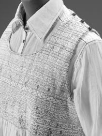 was searching for an alternative model to the fashion cycle and I questioned whether India needed to follow the pattern of seasonal shows that are so relentless for all concerned from the designer to the artisans and the others along the chain. There seemed to be a struggle on all sides about meeting tight deadlines for handwoven, natural-dyed, printed, embellished fabrics and yet nowhere was I getting a sense that any of this was making a viable business. Revisiting some old texts on artisan-designer relationships I was reminded of an article by Meeta and Sunny on their work with the block-printers of Kaladera, Rajasthan, and though this wasn’t high fashion, it was an example of small-scale sustainability.3 Without pushing the Gandhian idea of small-scale production as a full and workable alternative, I wonder if there is something within that concept that can offer a better, more humane way forward, perhaps feeding into the slow-fashion movement and demonstrating that India can lead the way?It was imperative for the exhibition to include a section on the continued impact that India makes on global fashion and, in keeping with the handmade theme, I choose to explore the story of how high-end designers in the West have their embroidery done in India. It was by far the section that took the longest to secure pieces for display, because though it is a well known process the majority of the industry is complicit in keeping it out of public knowledge. Having spoken to numerous suppliers of embroideries, I had first-hand evidence of the practice. However, few western brands are willing to admit to it in the open for fear it will upset their brand image. Embroideries supplied as piece goods are worked into garments elsewhere which cuts out the need to include ‘Made in India’ on the label. Perhaps India should call for a label that says ‘Embellished in India’ or ‘Crafted in India’.