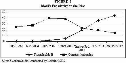 raditionally the BJP was seen as an urban based party, but in 2014 it received significant votes from the rural areas too. In the rural constituencies, the BJP’s vote share increased by nine percentage points from the 2014 election, even as the percentage of its vote share in urban constituencies went up by only 3%. The BJP thus is not only expanding its support base amongst social groups, but also doing so geographically. The party which earlier enjoyed marginal support in East and South India has now significantly increased its vote share in these zones.Issues, performance and personality (leadership) clearly affect electoral outcomes and determine the fate of governments. However, sometimes one aspect overshadows the others. The non-performance of the Congress party pushed voters to look for other available options. The BJP, under the strong leadership of Narendra Modi, prioritized mass issues like price rise, corruption, unemployment and development and successfully provided a good alternative for the voters. Three years after coming to power, it now appears that the party has side-lined these issues and the agenda of Hindutava has taken centre stage. Nevertheless, the party’s support is intact and it continues to be well placed for the next Lok Sabha elections even though the voters are not very satisfied with the performance of the government. In fact, the party’s popularity is no longer confined to its core constituency; rather it is making inroads amongst those sections which traditionally were less likely to vote for it. This has a lot to do with Modi. He is the glue keeping the party’s support intact. The absence of a strong leader from the opposition has further added to his aura. At this juncture no candidate from the opposition is in a position to give Modi a tough fight.
