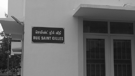 n such a complex cityscape, the city’s layout contains various layers of architectural writing and overwriting, shifting and moving in hyperlapse as it were, with subsequent waves of history even as quarters came to be drawn, monuments relocated, streets named and renamed and community identities refashioned. These layers of reconfigurations are as much a result of power and governmentality as they are of a certain cultural translation aligned with the changing meanings of spatiality and identity. On the other hand, the intertwined presence of French and Tamil courses through the different quarters, taking on the local colour and language through certain streets, lanes and by-lanes and telling a different story in others.