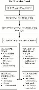 Various other cities like Amritsar, Delhi, Patiala and Pondicherry have also invited CRUTA to help begin similar efforts/initiatives in their own cities. Already heritage walks have been planned for many of these cities. The organizational set-up at Ahmedabad Municipal Corporation is shown below.