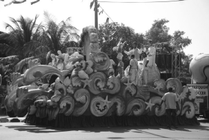 Traditionally, participants parade sitting on top of trucks, holding advertisements of companies and products. Our floats, headed by the caravela, the one dedicated to Iemanjá, the Goddess of the Sea, and the one reserved for the singer Belinda and her band, were also quite innovative.