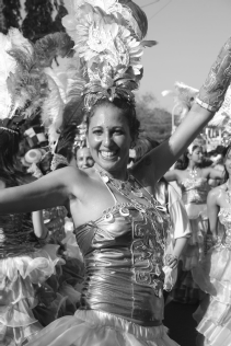 The innovations brought by our participation in the 2008 festivities were: (a) A specific plot – The Discovery of Brazil; (b) Dancers performing on the street, assembled in groups with their own theme. For example, as mentioned above, the female dancers, all in blue costumes, represented the oceans through which the Portuguese caravelas had to travel to get to Brazil and India. The male dancers performed as the Brazilian natives or ‘Indians’, as the Portuguese called them.