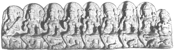 Figure 12: Ganesha with Saptamatrikas, Aihole, Karnataka, 8th century CE. |