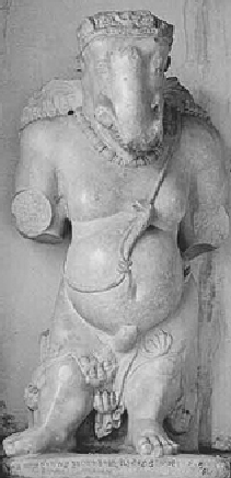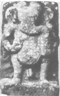 6 (fig.1). The resemblance to Ganesha is remarkable: Ganesha is a scribe; he was born holding a trident, which is also an attribute of his father, Lord Shiva; the snake is tied around his waist or protects him.Afghanistan had several Ganesha figures. The earliest is probably one from Sakar Dhar (formerly Shankar Dhar), North of Kabul, where Ganesha wears a yajnopavita (sacred thread) made of a snake (fig.2). The left tusk is broken and his two lower arms rest on two curly haired ganas, not unlike the ayudha purushas of the Gupta temples at Deogarh. Another early Ganesha figure from Afghanistan was a Maha-Vinayaka at Gardez (fig.3). The figure was later removed to the dargah Pir Rattan Nath at Kabul where it was worshipped by local Hindus. There is an inscription saying that, ‘This great and beautiful Maha Vinayaka was consecrated by the renowned Shahi King, the illustrious Shahi Khingala.’