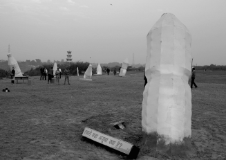 ust how ‘public’ a site is, becomes known when permission has to be obtained for its use. This exercise, even for a site which hardly anyone in the city visits, was a major challenge. Clearances had to be obtained from innumerable government bodies, each with its own impenetrable procedures. A public art intervention is treated like any other event, needing security clearance and no objection certificates from the police, fire and electric wiring clearances, flood and water department, food, health, municipal permissions and tax authority waivers. Often government functionaries have no sympathy for even non-commercial projects such as this one. Clearing these hurdles was a frustrating task for the project team, in spite of the fact that the Government of Delhi was a project partner and the chief minister herself had blessed the venture. It is worthwhile mentioning that on the night before the inauguration of the project, all clearances were summarily withdrawn, citing ‘security’ concerns. It was only owing to the good offices of supporters that these were resorted the following day, after much persuasion. In fact, the final permission was being signed even as the chief secretary of Delhi was inaugurating the event! The lack of public-ness of this site was evident.|