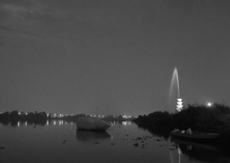 t is ultimately the art interventions at site, which can change its aesthetics. The project hosted a number of artists from Delhi and Germany. The art works consisted of multimedia, interactive, performative works, on-site installations, photographs and video projections. They dealt with themes of mythology, biodiversity, recycling, urbanization, and site histories.9 Sheba Chachhi’s evocation of feminine river mythologies through her projected video installation, Gigi Scaria’s and Atul Bhalla’s large sculptures on water recycling and its commercialization, Nana Petzet’s and Jochen Laempert’s work on local biodiversity, or Asim Waqif’s meandering river lights tracing the water each evening, amongst others, transformed the site into one of beauty.