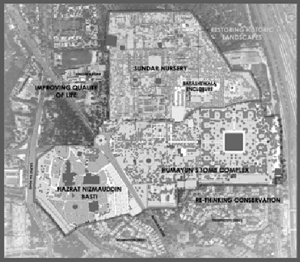 The development process, especially for historic districts, must craft a delicate balance between the structural heritage of the monuments, the social and cultural heritage of communities that have lived for generations around them, and the economic and infrastructure needs of the area. Even though several urban design interventions in the Nizamuddin Basti have brought about a visible change, it still continues to grow indiscriminately in the absence of an appropriate policy framework. So far the Master Plan has articulated the need for special area plans for heritage zones, including the Nizamuddin area, and the AMASR Act (amendment 2010) recognizes the fact that each monument is unique and the development around it should be guided by a set of by-laws that are unique to its setting.