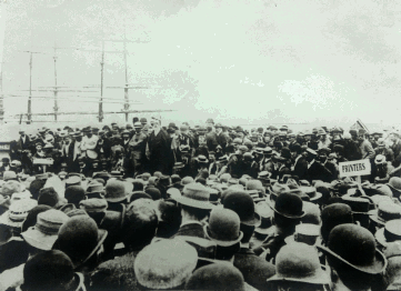 Fig. 3: Photograph of lynch mob gathered on Durban dockside awaiting Gandhi’s arrival, 1897. Reproduced with permission of the Local History Museum’s Collection, Durban. |
