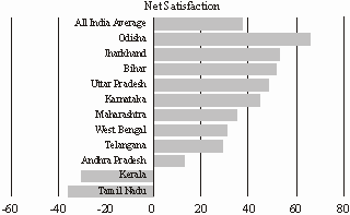 hile the average net-satisfaction level was around 38%, there were many states which had even higher levels (Table 5). In Bihar, Uttar Pradesh, Karnataka and Jharkhand, where the alliance of Congress and state-based parties challenged the BJP, the net satisfaction levels were way above the national average, leaving little space for the alliance to make a mark. Likewise, in Maharashtra, the net-satisfaction level was near the average.In West Bengal and Odisha, where the BJP faced single-state parties, we again find that voters were generally satisfied with the central government. In the case of Odisha, voters were highly satisfied with both the central government and the state government (55%). While the Biju Janata Dal (BJD) was voted back at the state level, the BJP made substantial gains in the Lok Sabha. In Telangana too, the voters were highly satisfied with the state government (54%) but preferred to give the BJP a chance at the Centre. In the case of these three states, the Congress which was the alternative to the state-based party is being edged out, and the BJP appears to have a foot in the door.